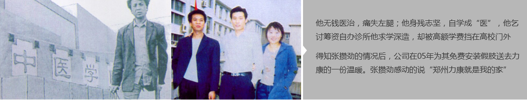 鄭州市力康假肢矯形器有限公司(簡稱力康),是一家專業(yè)從事假肢矯形器的設(shè)計(jì)、研發(fā)、制作及裝 配的專業(yè)機(jī)構(gòu)。成立于1992年是河南省唯一一家福利企業(yè)。力康下設(shè)業(yè)務(wù)部、技術(shù)部、住院部、康復(fù) 部、售后服務(wù)部,并配有現(xiàn)代化的裝配車間和功能齊全的訓(xùn)練大廳,為殘疾朋友康復(fù)訓(xùn)練提供了可靠 保障。總經(jīng)理穿戴假肢多年,有著豐富的臨床經(jīng)驗(yàn)和親身體會;多年來,力康已為全國幾十萬名殘疾 朋友安裝上舒適、美觀、耐用的假肢和矯形器具,使他們更大限度地恢復(fù)了正常的工作和生活。“產(chǎn) 品即人品”的質(zhì)量理念、先進(jìn)的技術(shù)、實(shí)惠的價格、完善的售后服務(wù)是力康取勝的法寶……